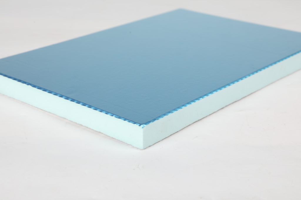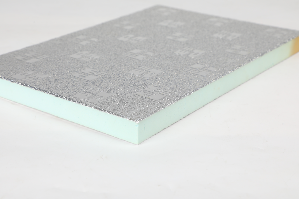 Eco-friendly insulation 52±2Kg/m3, 20.5mm thick ±0.5mm with embossed aluminum on one side and smooth, antibacterial-coated aluminum on the other.